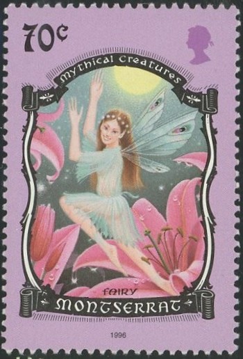 切手としては、”Pixie”と表記されていませんが、妖精族(Fairy)の代表として、ピクシーのイメージにぴったりの切手が、1996年にモントセラト(Montserrat)から発行されています。