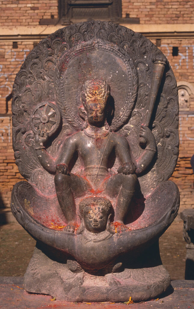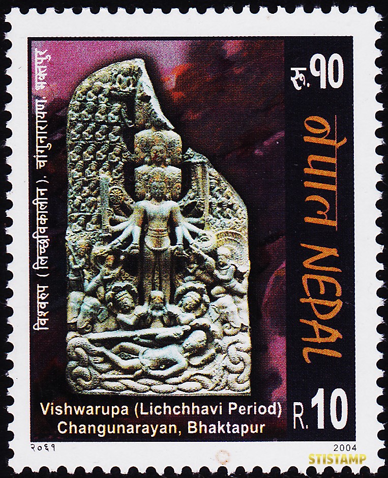 バクタプルのチャングナラヤン寺院に残るリッチャヴィ朝時代の「ヴィシュワルーパ像」を描く。ヴィシュワルーパはヴィシュヌ神がアルジュナに示した“宇宙的形態”として知られる。