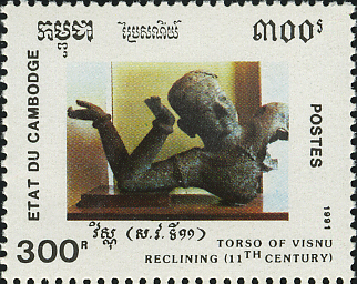 宇宙創造以前の原初の海に横たわる姿を表した彫像で、世界が生まれる前の静寂と永遠性を象徴。東南アジアにおいてヴィシュヌ信仰が王権と結びついていたことを示す重要な造形。