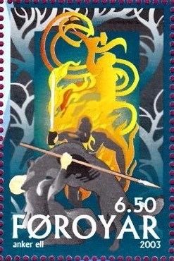フェロー諸島を代表するアーティストで、北欧神話を題材にした切手を多数制作