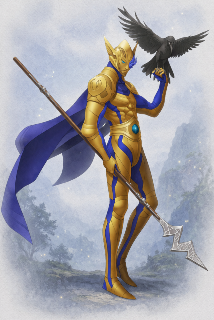 隻眼の姿で描かれる理由は、知恵の泉ミーミルの水を得るために、自ら片目を代償として捧げたためです。この逸話は、オーディンが力だけでなく「知」を何よりも重視する存在であることを象徴しています。